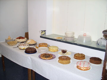 At teatime, there is always a selection of `home-made' cakes, scones and buns to tempt you.